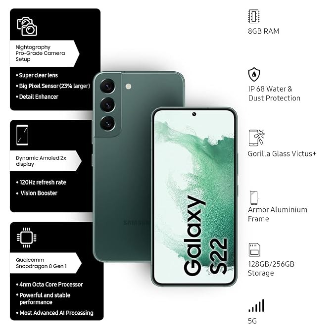 Sleek design in a range of colors lets you express yourself how you like. The slim bezels flow into a symmetrical polished frame for an expansive, balanced display. Corning Gorilla Glass Victus+ on the screen and back panels.