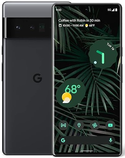 Introducing Pixel 6 Pro, the completely redesigned, fully loaded Google 5G cell phone. With a powerful camera system, next-gen security, and the custom Google Tensor processor, it’s the smartest and fastest Pixel yet. And it’s an unlocked Android smartphone, so you can choose the data plan and carrier that work for you. Works with all major carriers. Contact carrier for details. 5G service is carrier dependent. Requires a 5G data plan (sold separately). 5G service not available on all carrier networks or in all areas. Contact carrier for details. 5G service, speed and performance depend on many factors, including carrier network capabilities and signal strength. Actual results may vary. Some features not available in all areas. Data rates may apply. See g.co/pixel/networkinfo for info. Compared to Pixel 5. Based on internal CPU benchmark testing on pre-production devices. Compared to main rear camera on Pixel 5. Image simulated. Magic Eraser may not work on all image elements. Deblurring may not work on all photos or videos with faces. Fast wired charging rates are based upon use of the Google 30W USB-C Charger plugged into a wall outlet. Compatible with USB PD 3.0 PPS adapters. Actual results may be slower. Adapters sold separately.