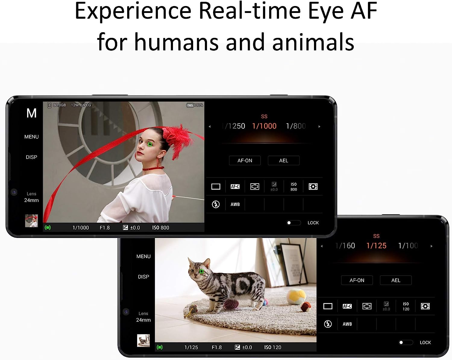 The Xperia 1 II sets a new bar for speed, offering up to 20fps continuous4 image capture with AF/AE tracking5 and Realtime-autofocus tracking and human and animal Eye-AF9, plus A21:9 CinemaWide 6.5” 4K HDR OLED display paired with exceptional audio including front-facing speakers and headphone jack.